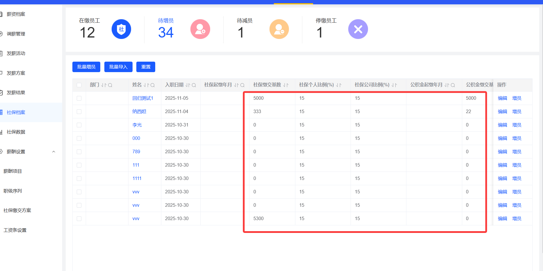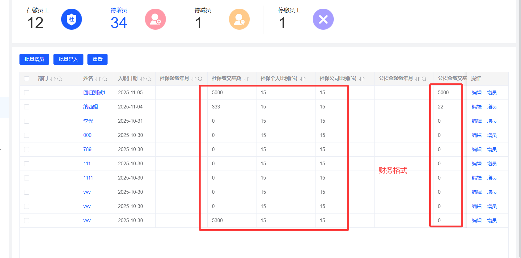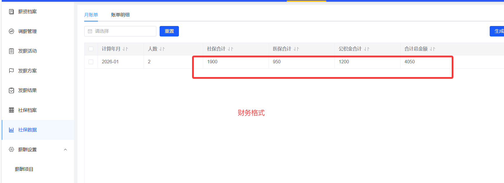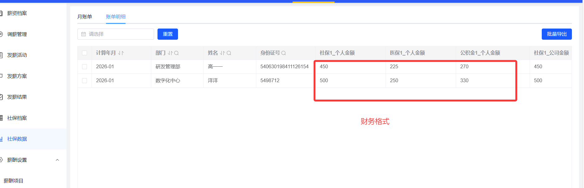 社保档案、社保数据,财务格式展示
