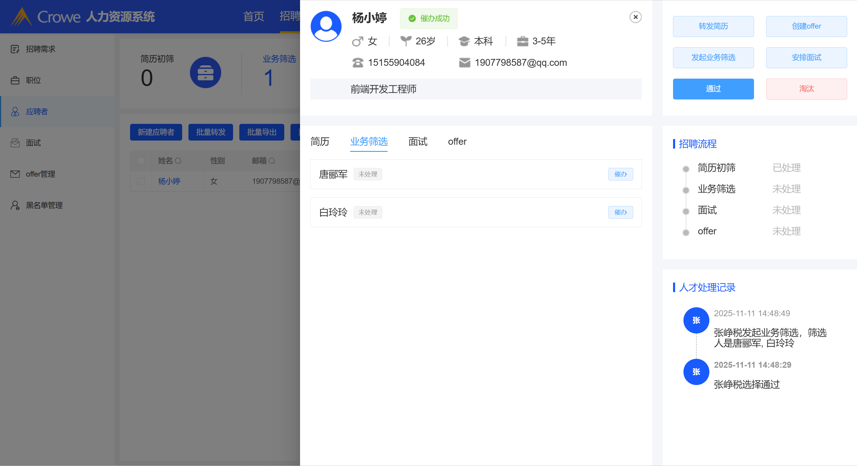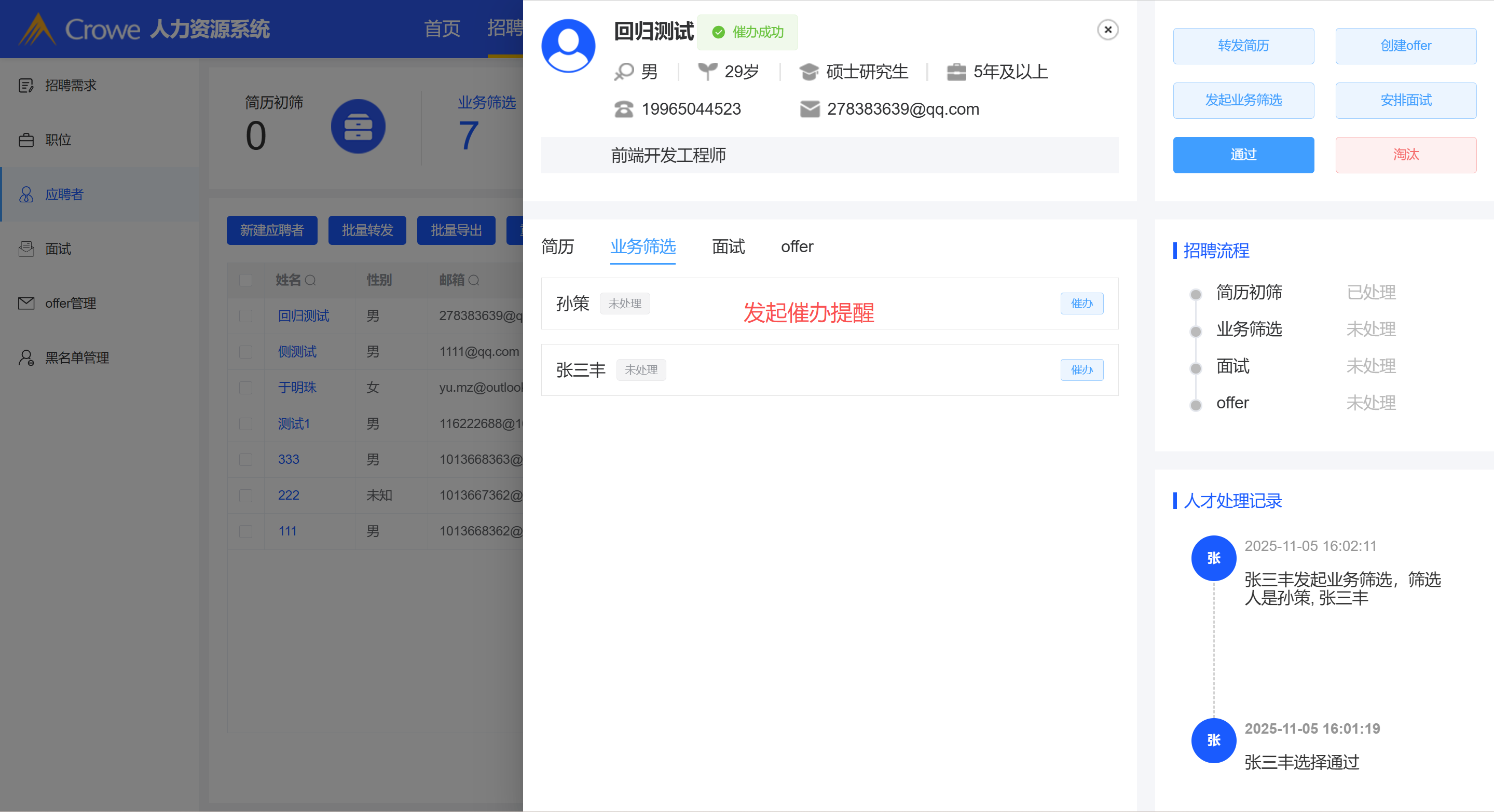 已关闭HR给负责人发起业务筛选催办,负责人未收到催办提醒