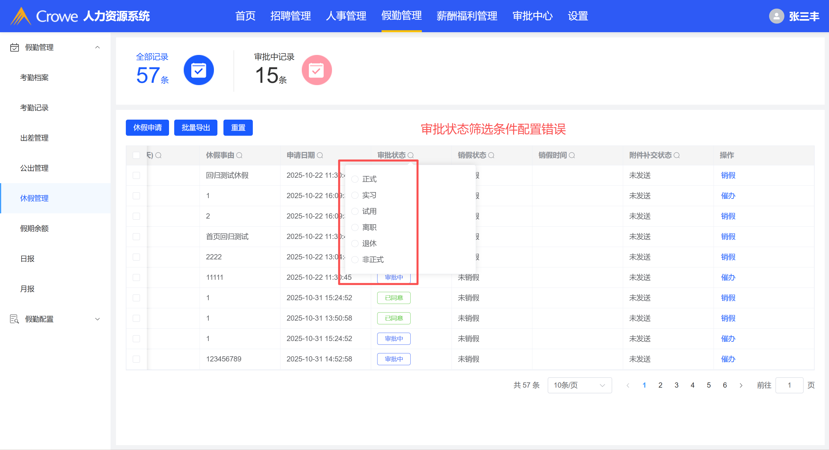 审批状态筛选条件配置错误