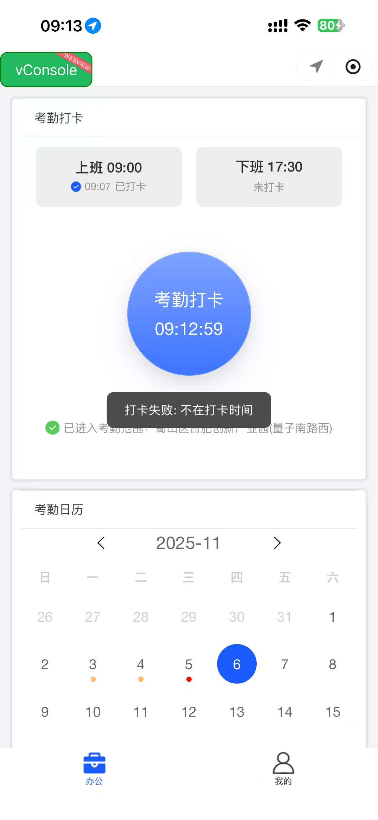 第一次打卡完提示提示语修改二次卡:“今日上班卡已打,无法重复操作”,四次卡“今日上午上班卡已打,无法重复操作”