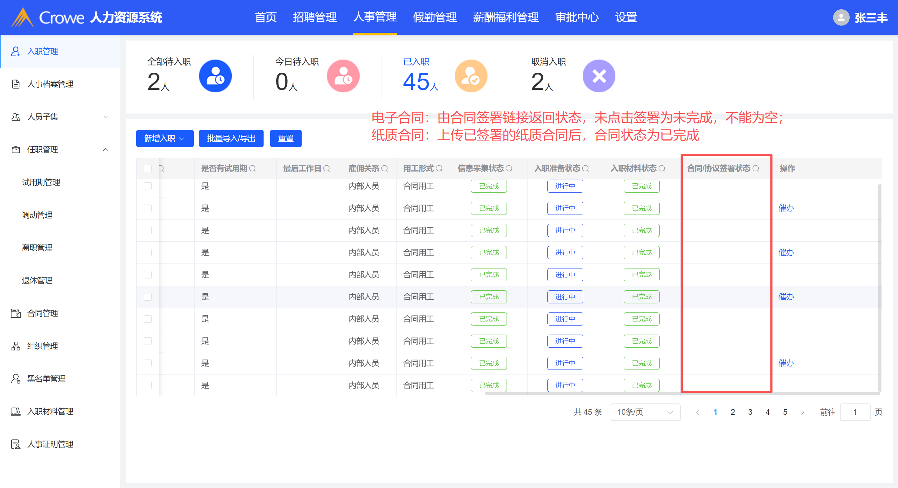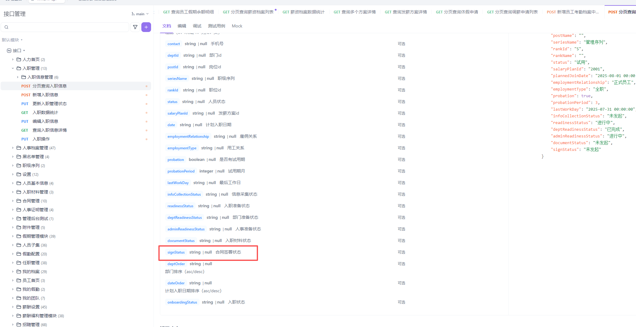 接口有返回合同签署状态