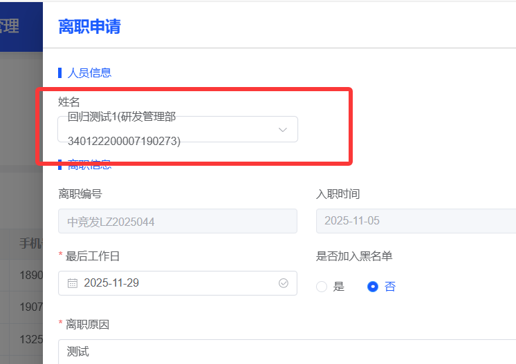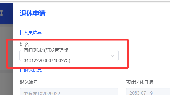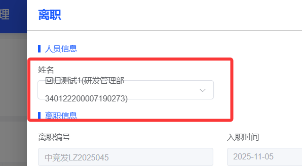 任职管理--离职申请(离职)和退休表单中,姓名样式调整