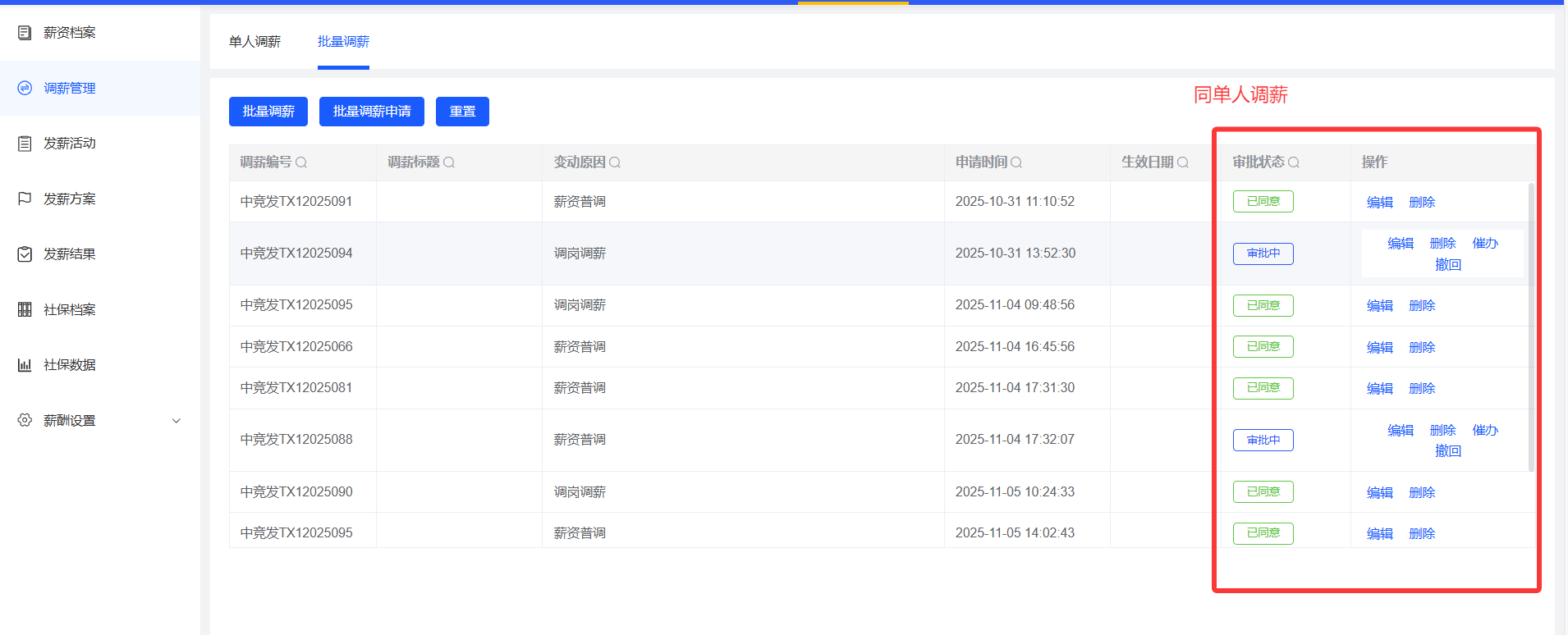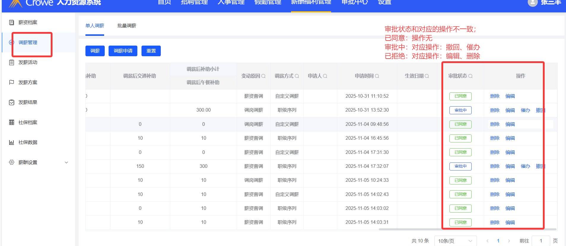 调薪管理---列表中,审批状态对应的操作不相符