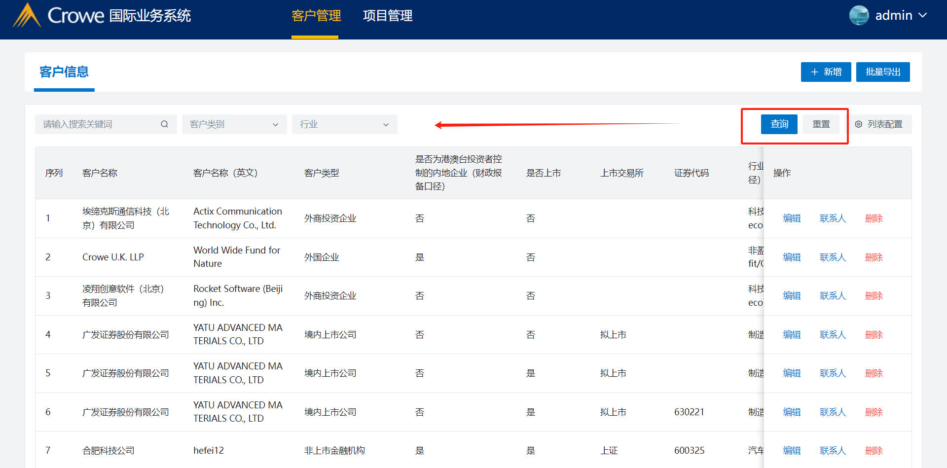 项目管理界面的查询和重置按键向左移动,紧跟着条件框