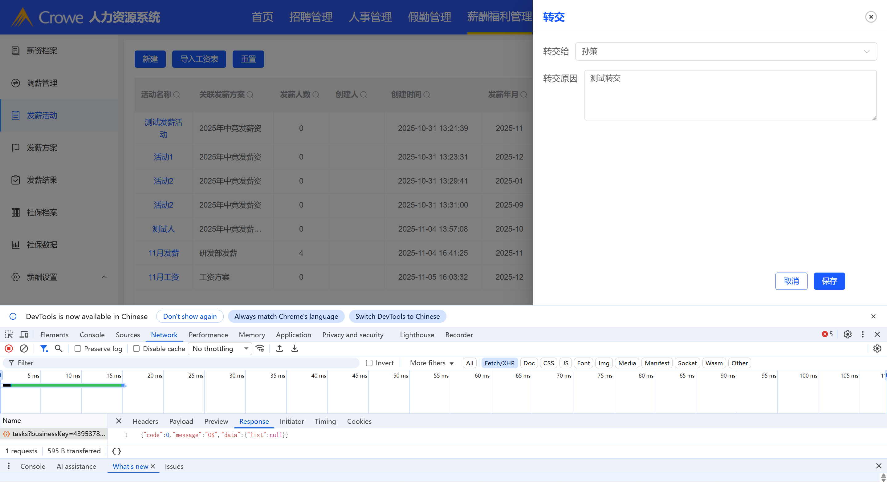 发薪活动原型中没有转交功能,页面转交接口报错