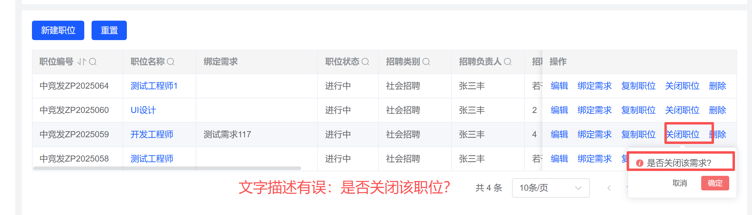 招聘模块-职位-“关闭职位与删除”提示文字均有误