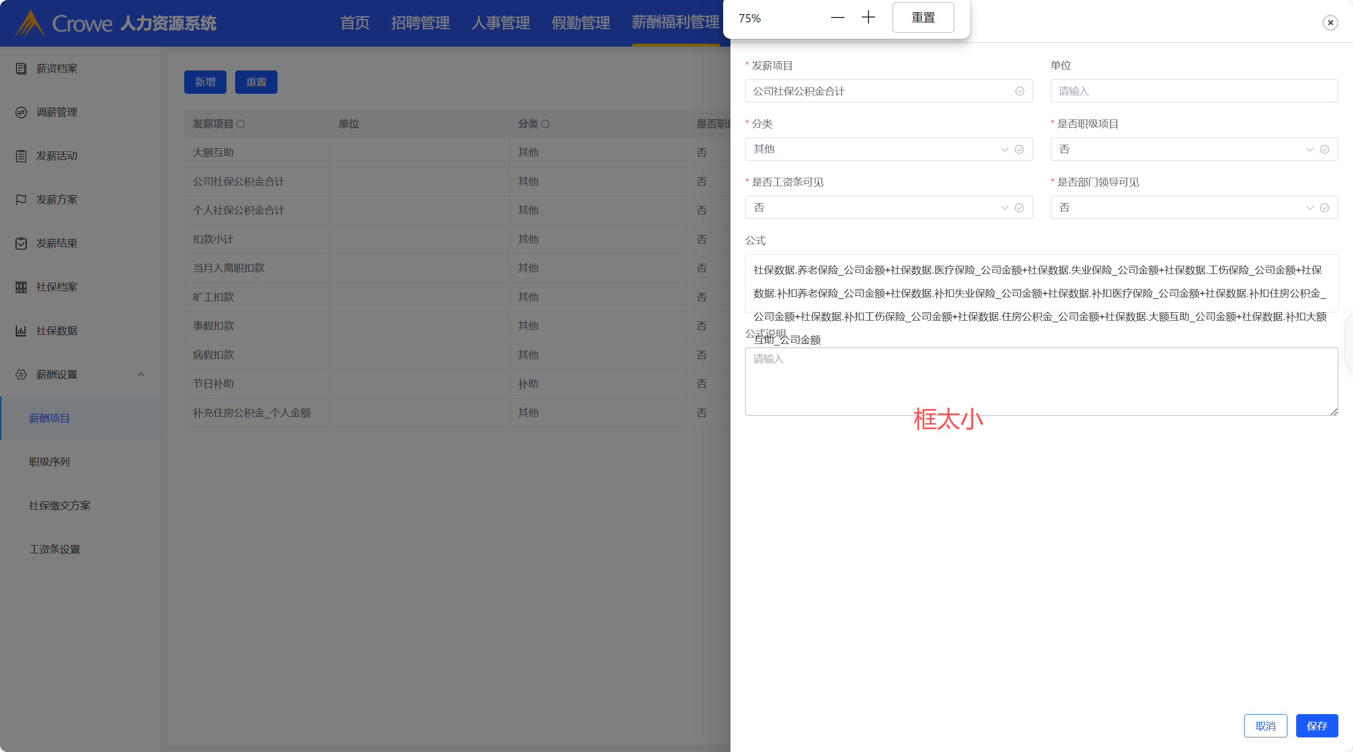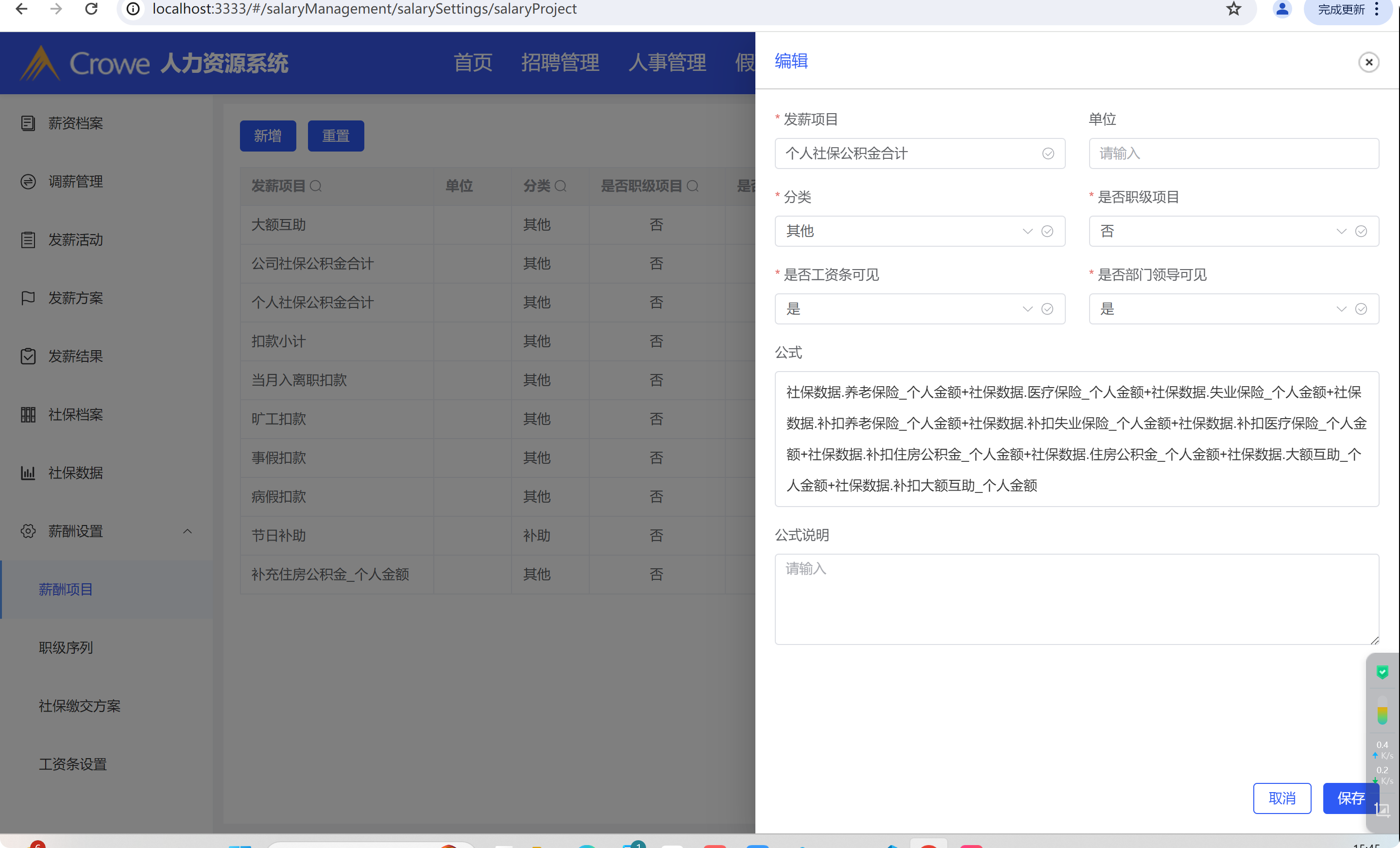 薪资项目-编辑,新增页面