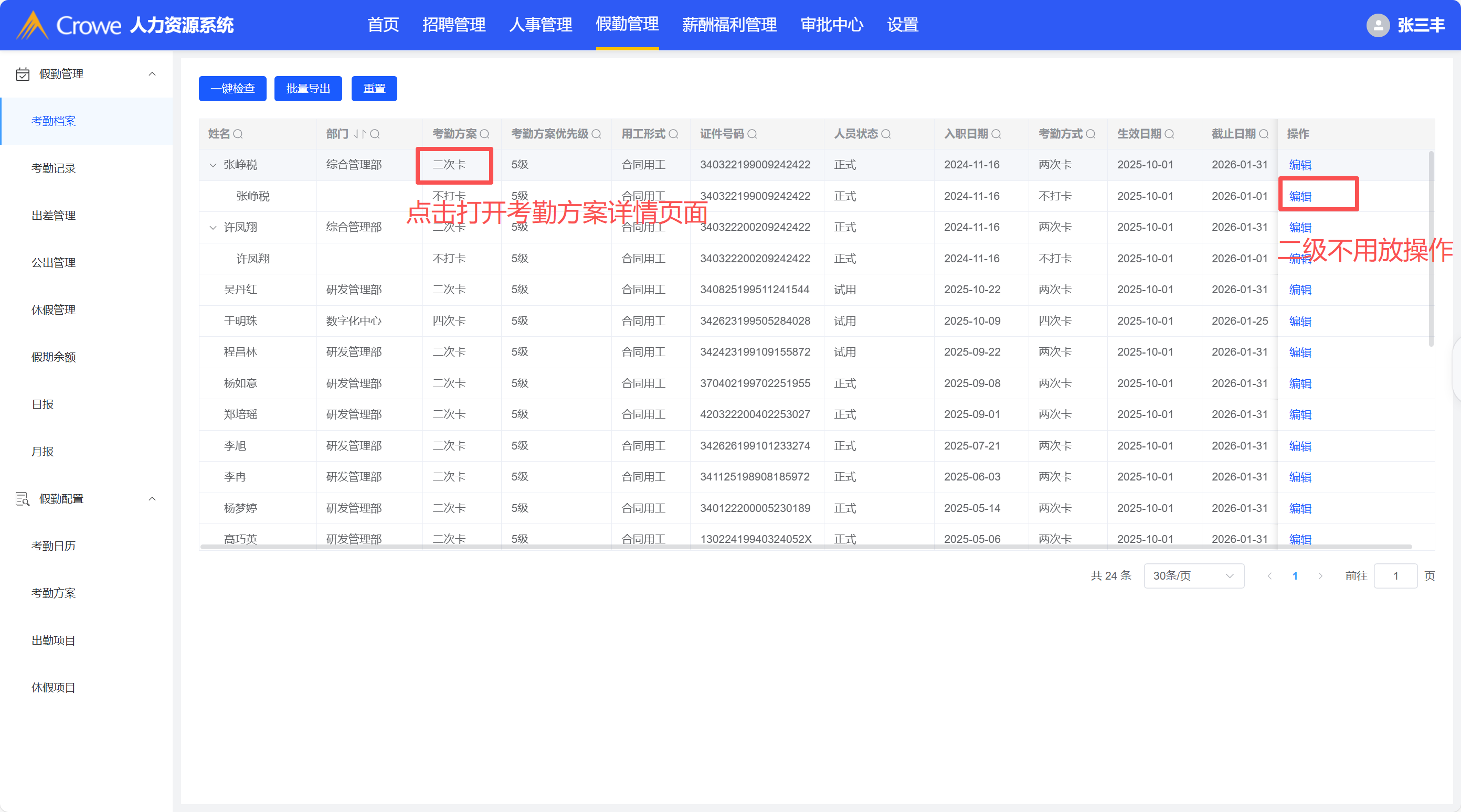 考勤档案列表修改