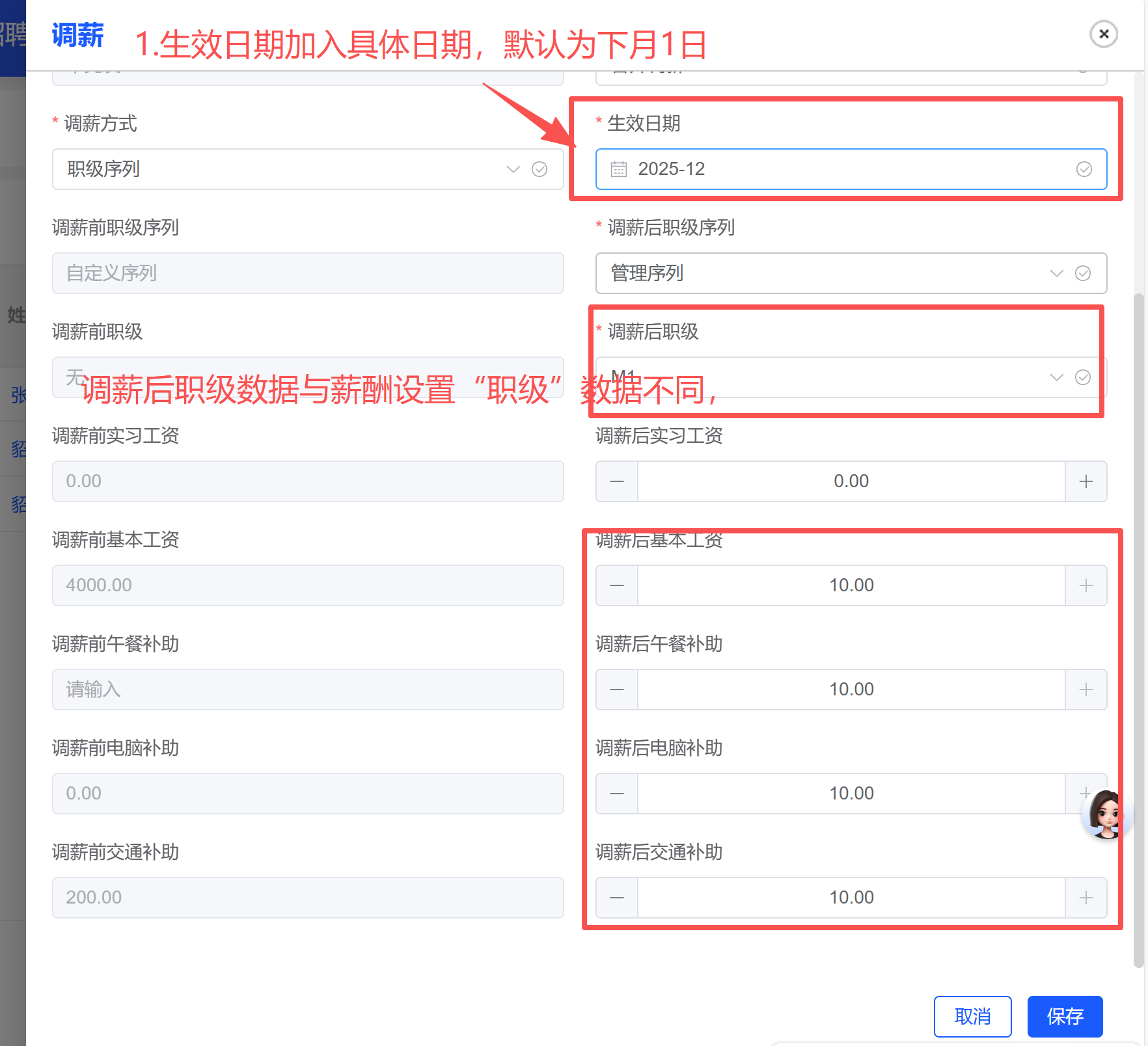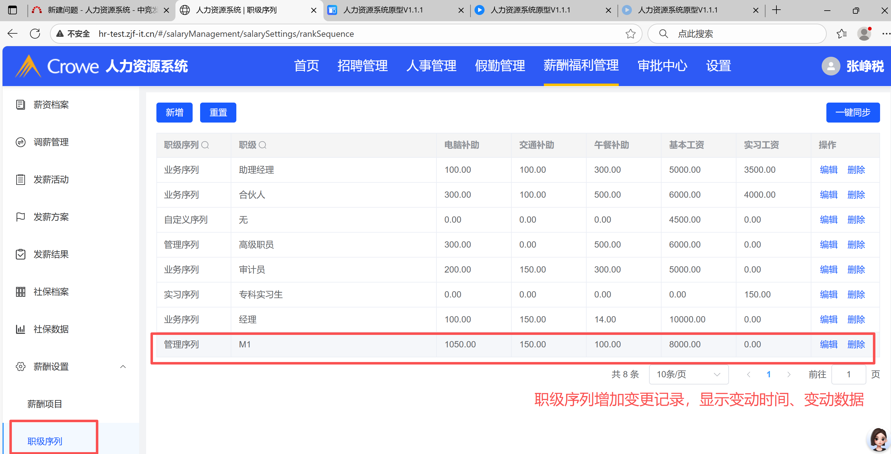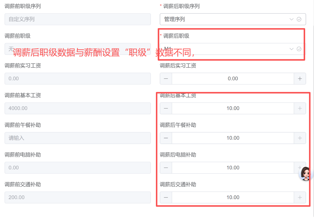 1.职级数据没带入;2.增加变更记录