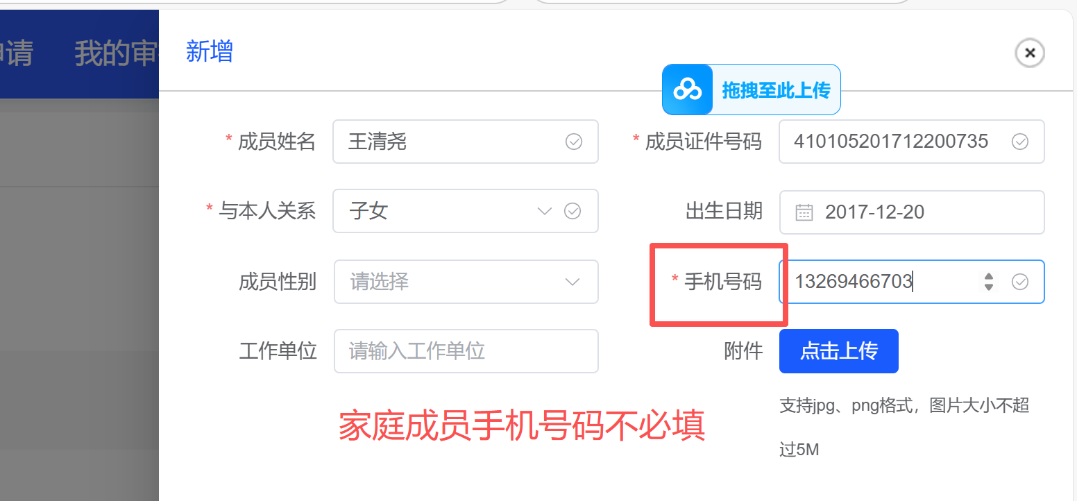 信息录入-家庭成员-手机号码不必填