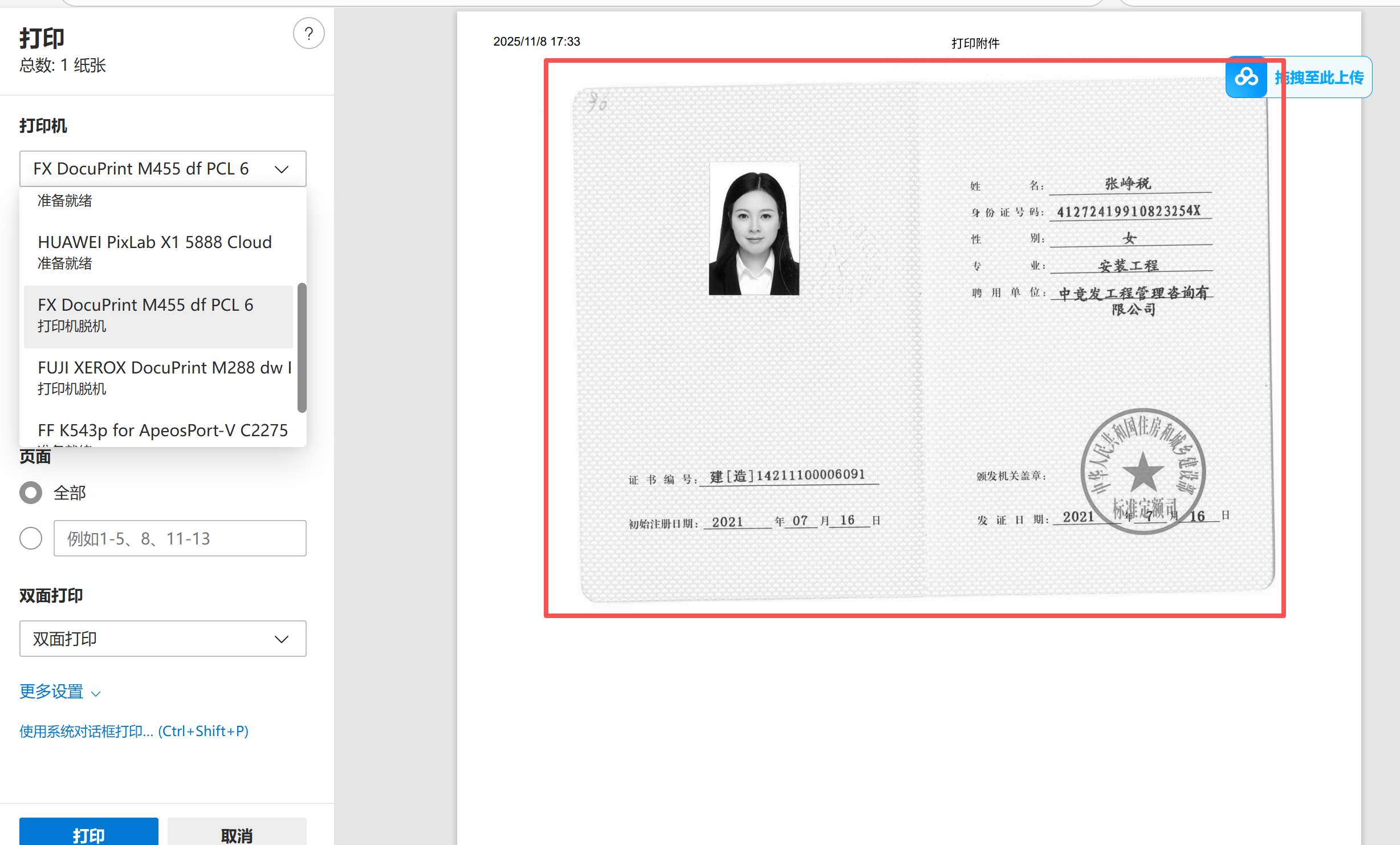 3、无法彩印问题:是浏览器根据硬件生成的配置参数【该打印机无法彩印,不展示彩打项】