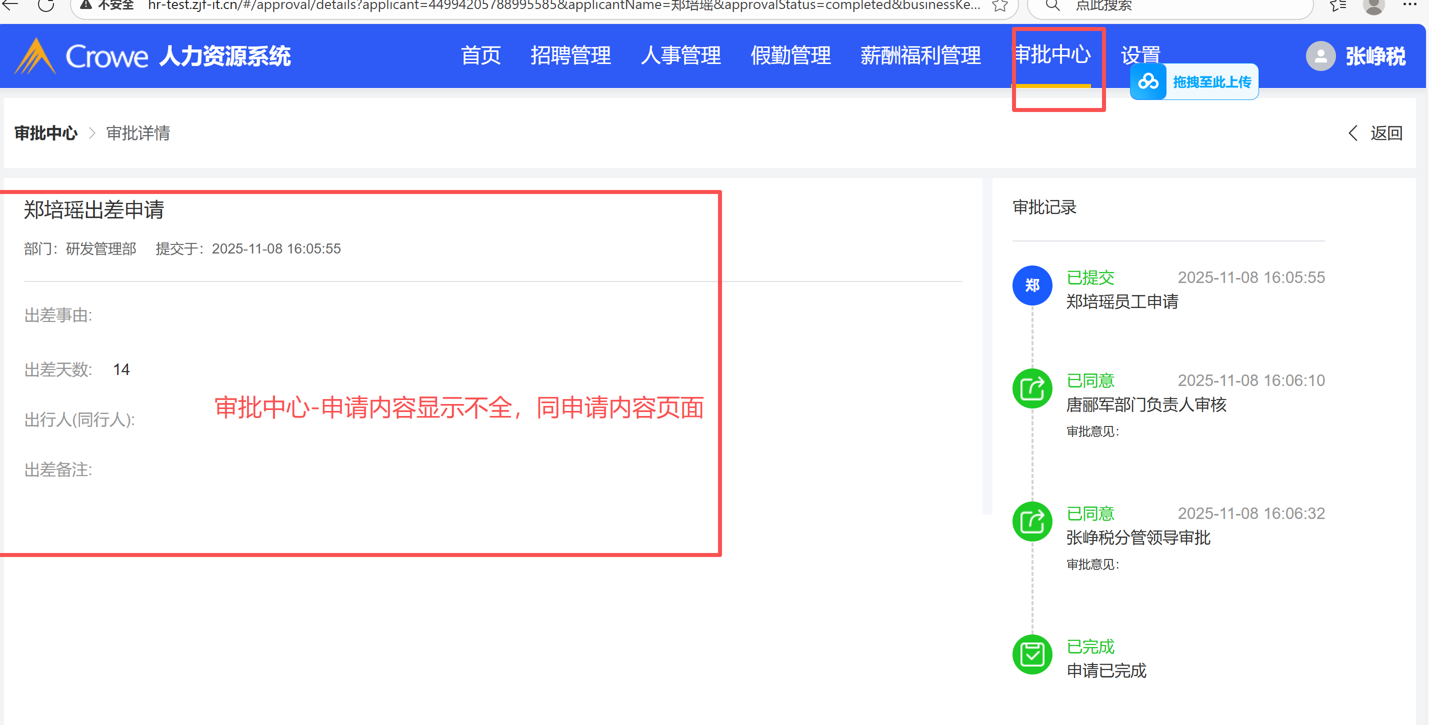 审批中心查看数据为空