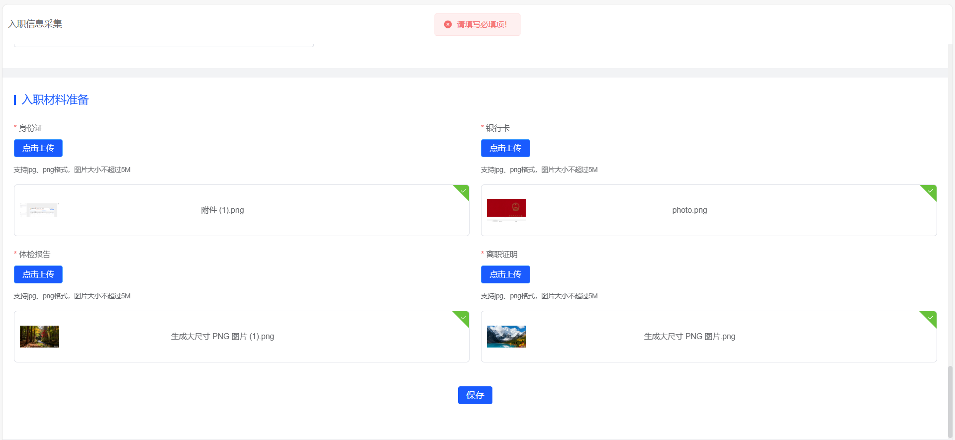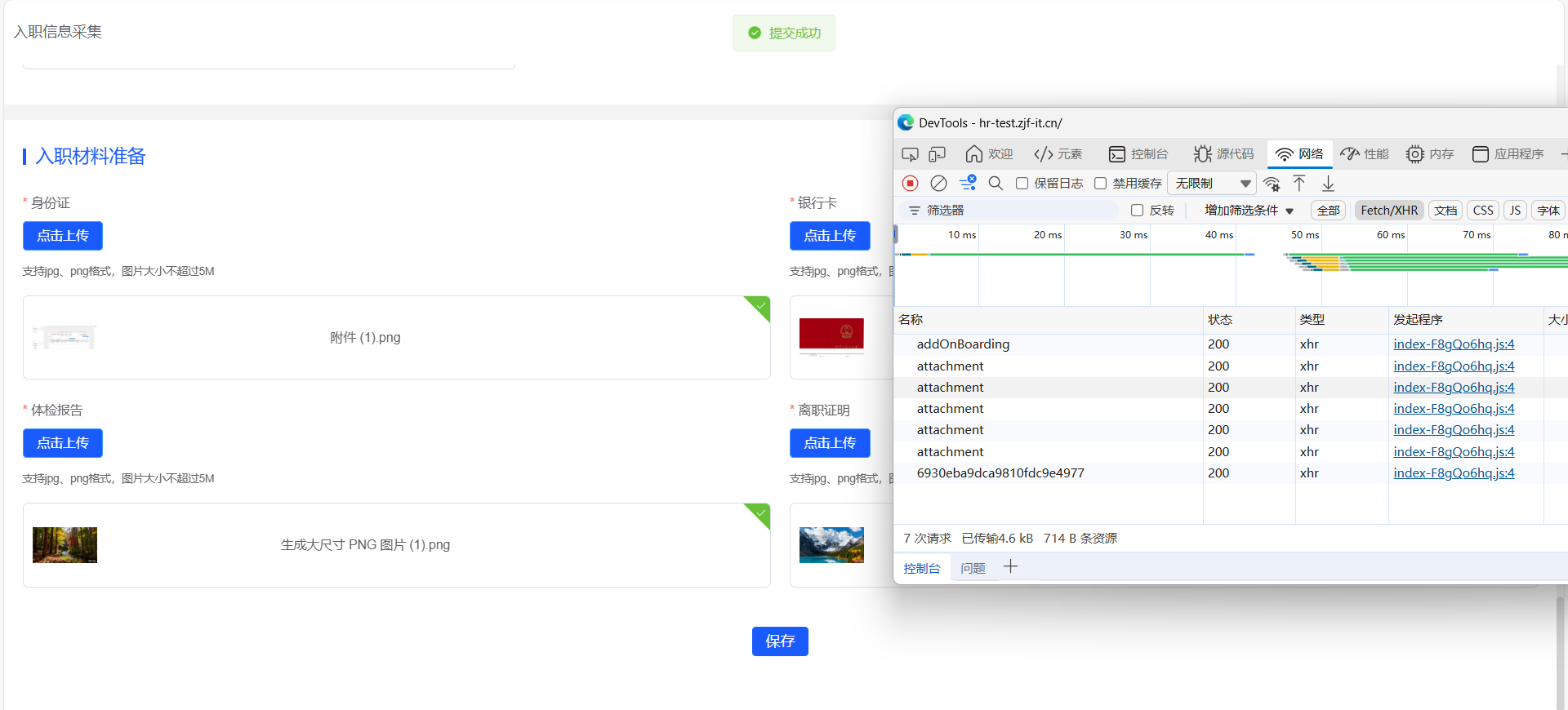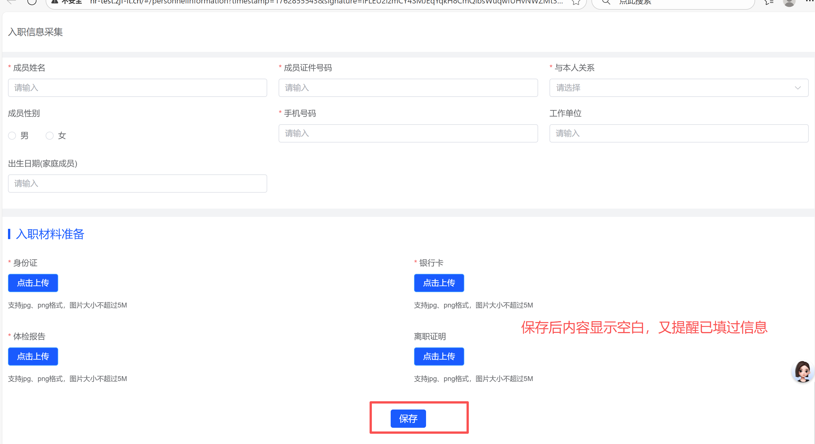 入职信息采集-提交后显示空白