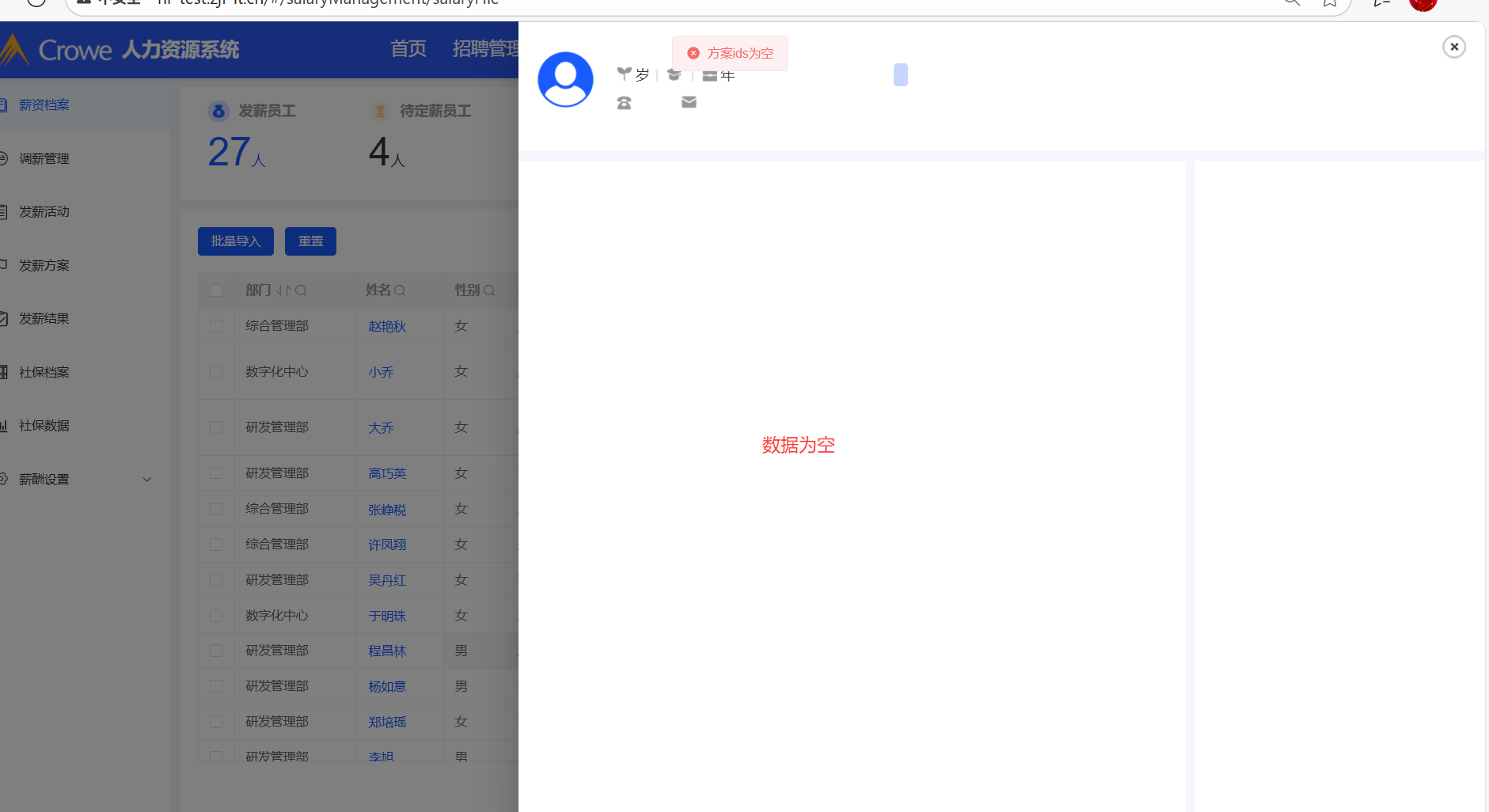 薪资档案,点击员工姓名查看详情数据为空