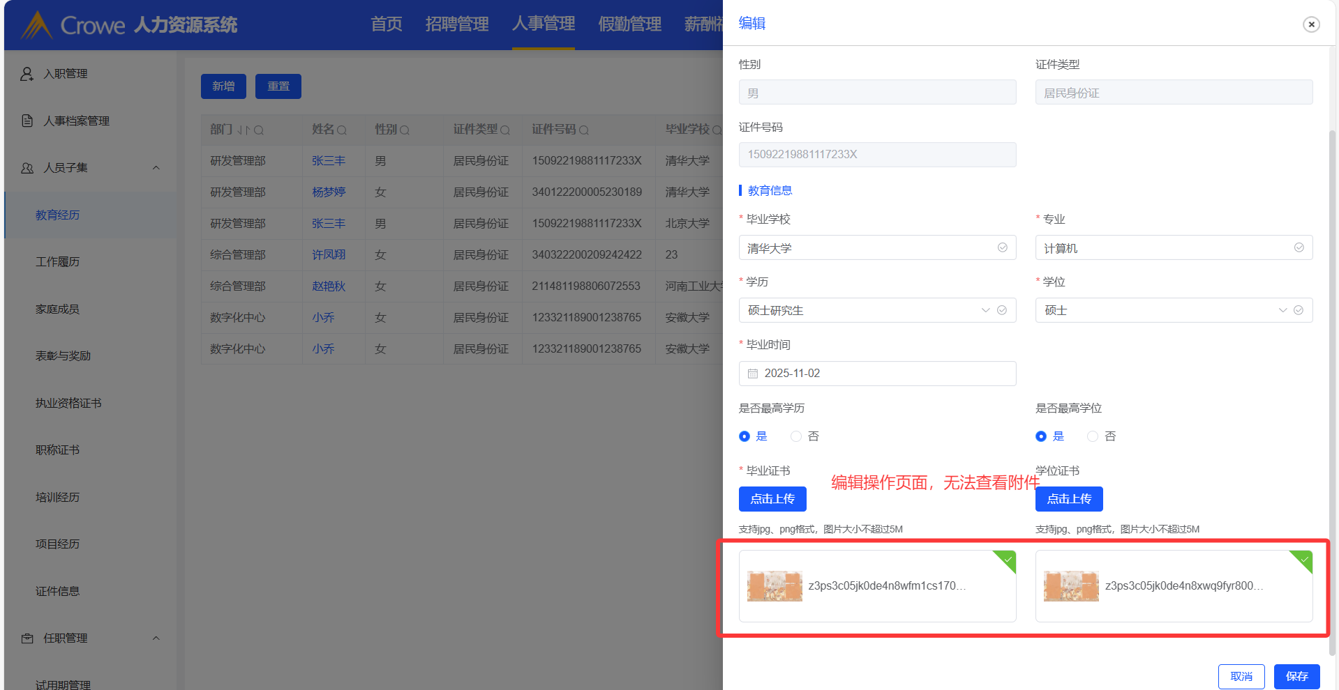 人员子集模块,编辑操作中,无法打开附件