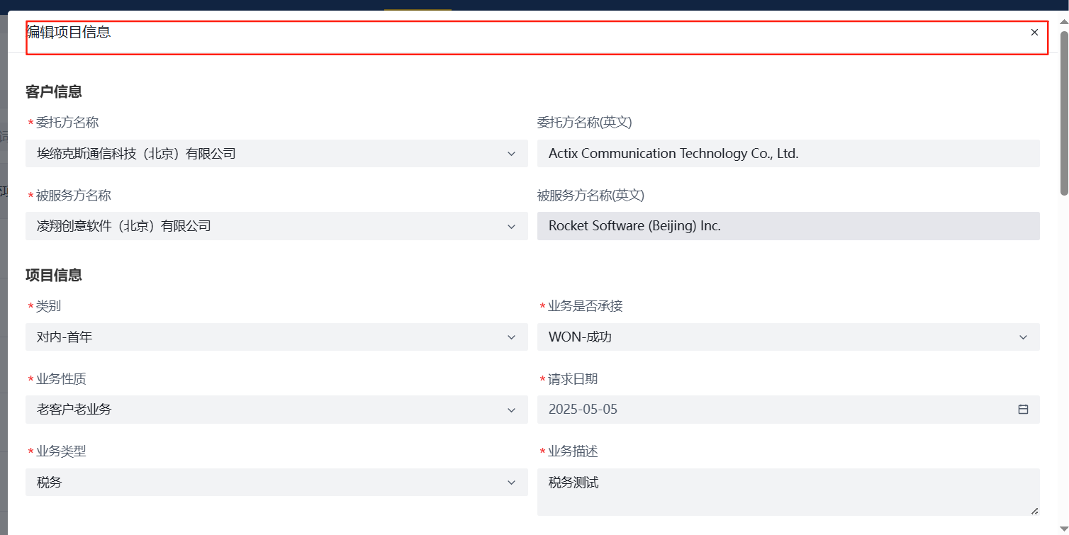 项目管理中的编辑合同、项目收款、编辑页面的页面抬头和退出按钮未固定