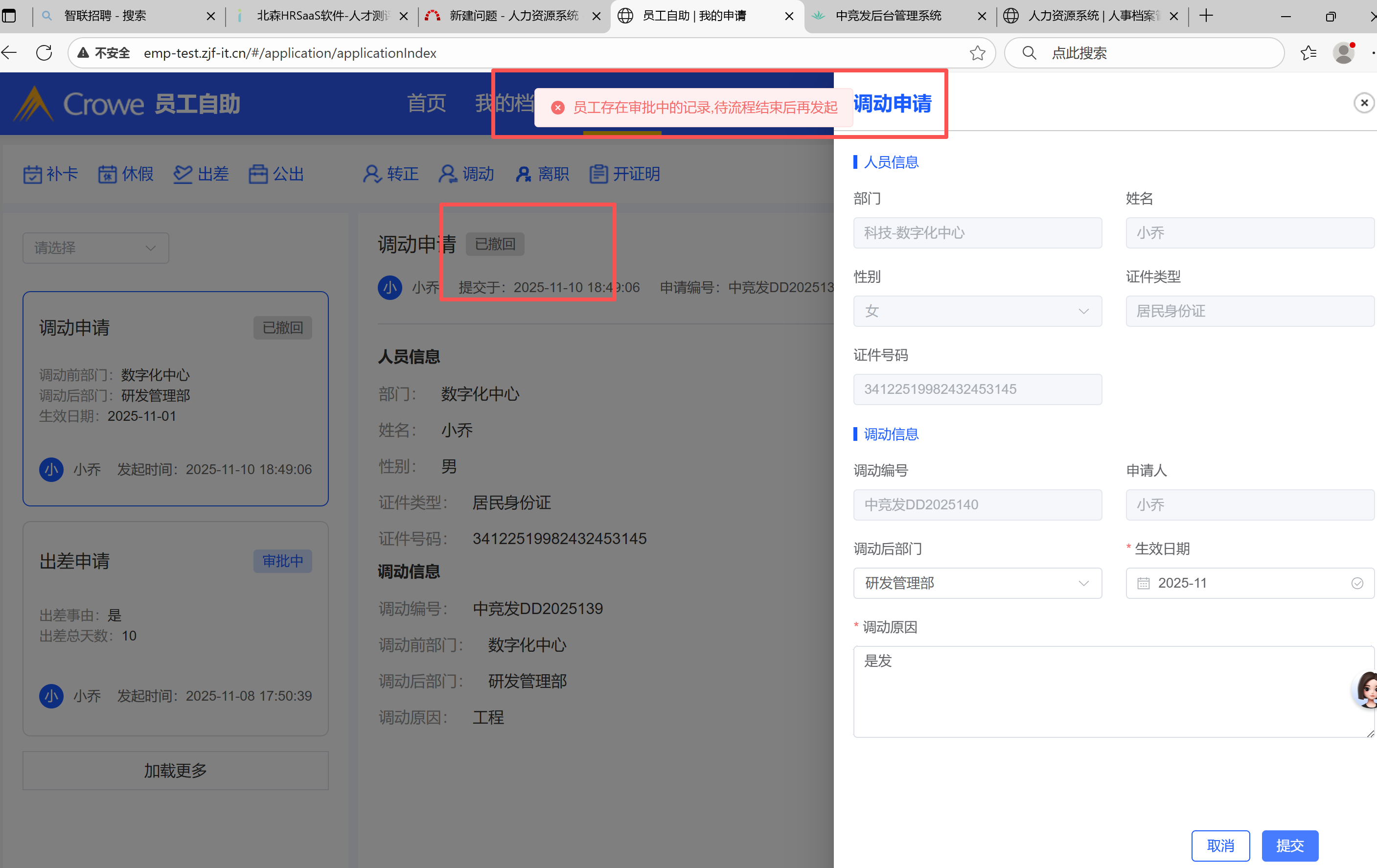 审批已撤回,重新提交审批提示“有审批流程”