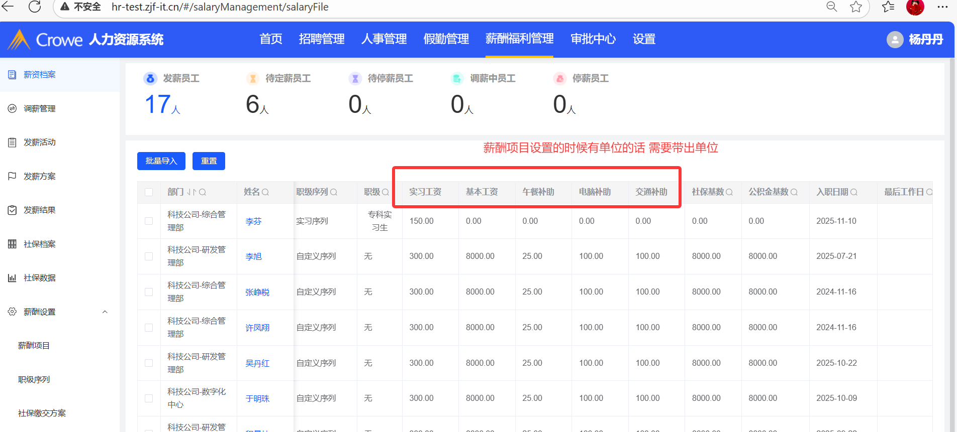 已关闭薪资档案,列表中薪酬字段展示,有单位的话需要带出单位