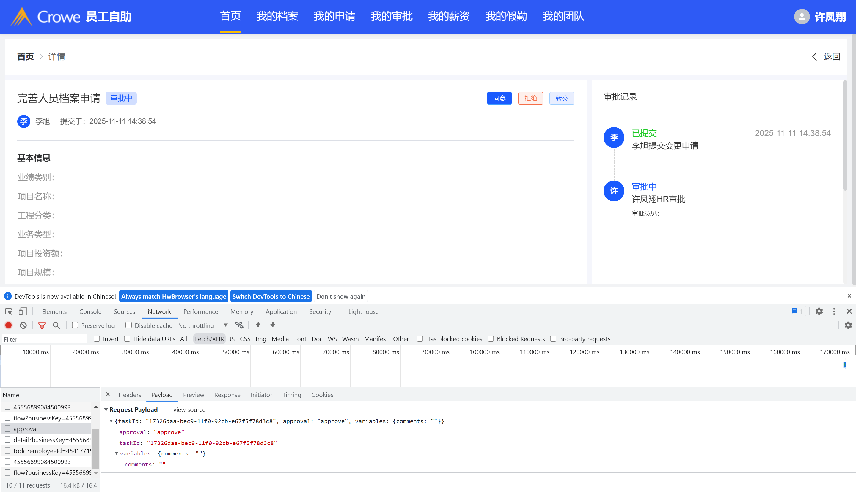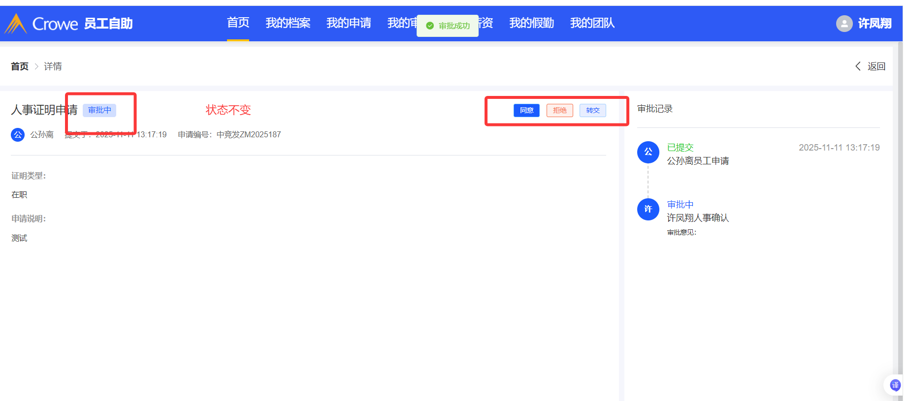 人事从我的待办中审批操作,状态不同步,只有人事在我的审批中进行审批操作才可以