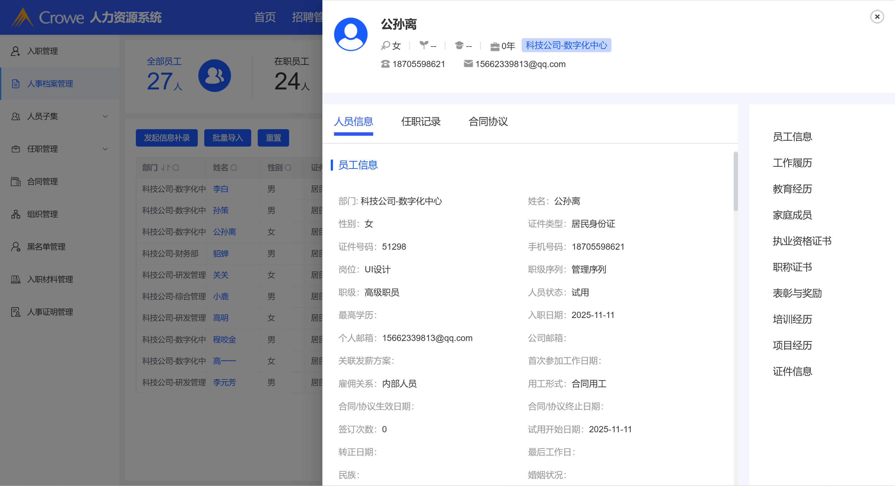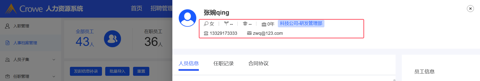 人员基本信息前后保持一致
