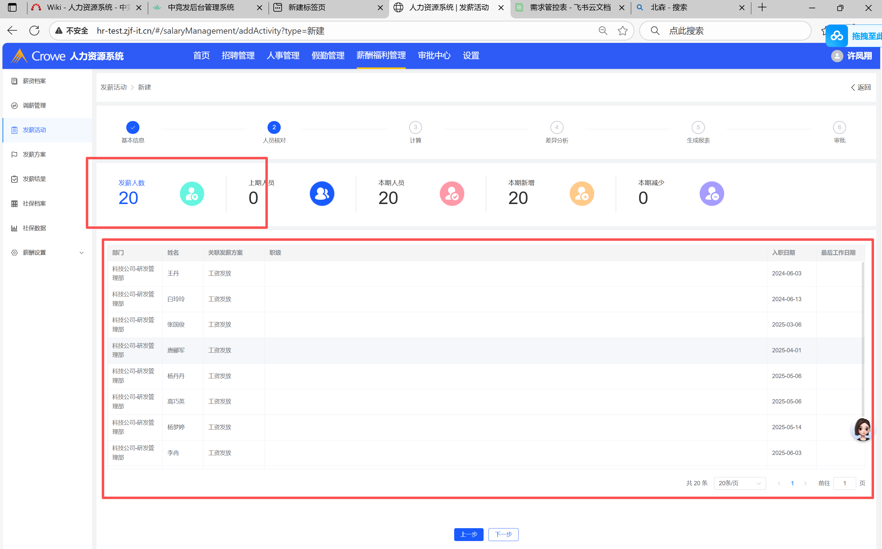 薪酬管理-发薪活动-人数不对,上面20人,实际10人