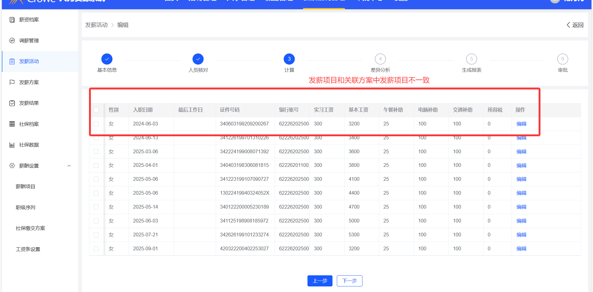 发薪活动--计算步骤带出的发薪项目和发薪方案关联发薪项目不一致