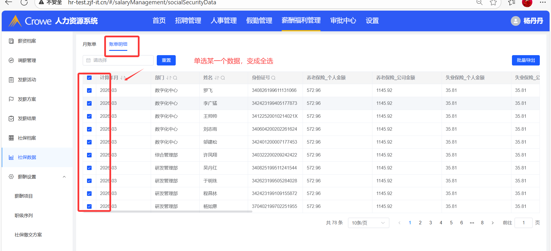 社保数据--账单明细中,账单明细单选某个数据,变成多选