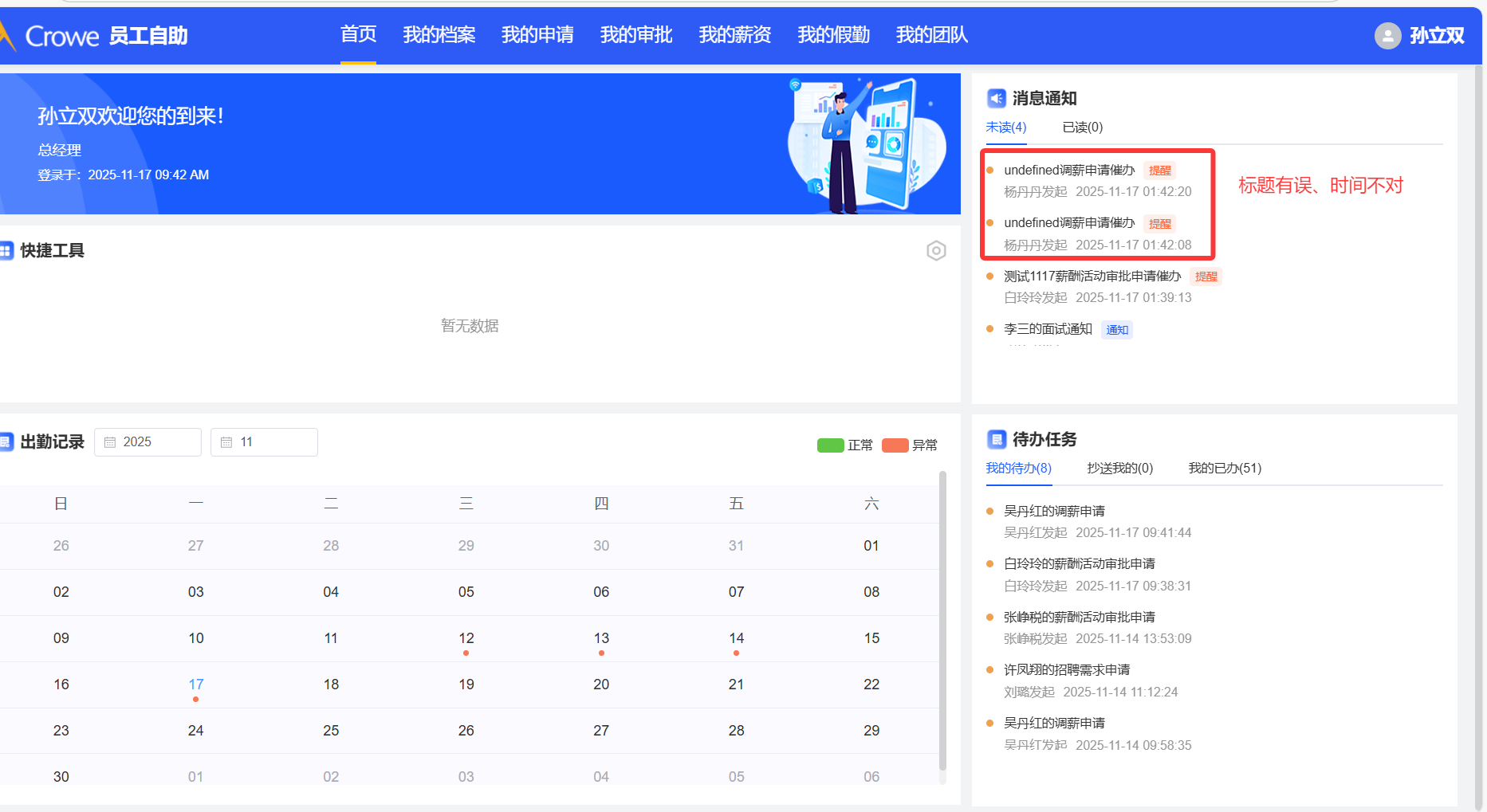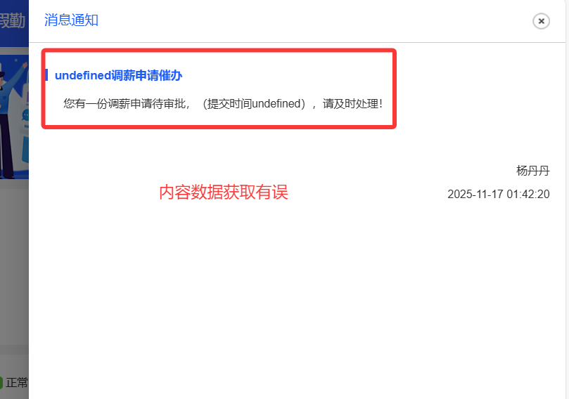 员工自助--调薪申请催办消息数据展示有误