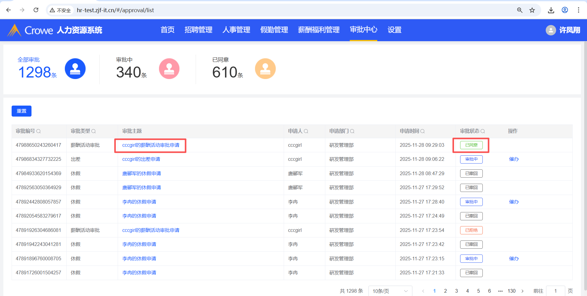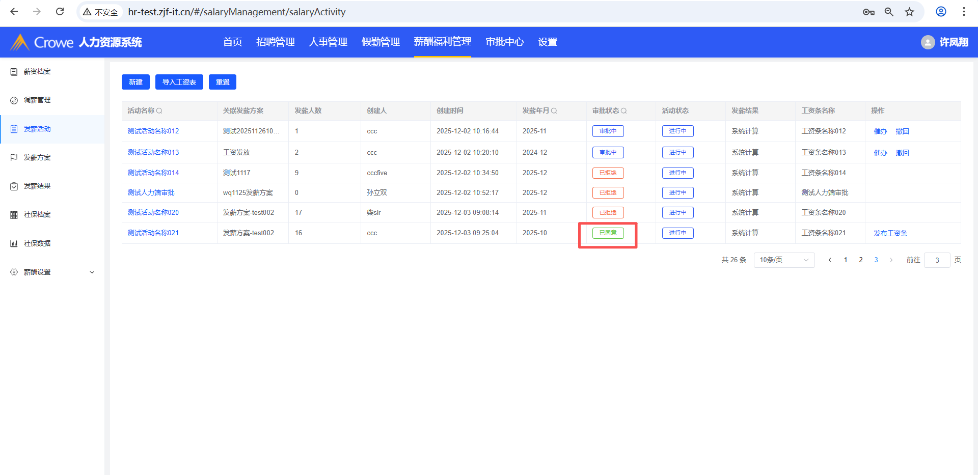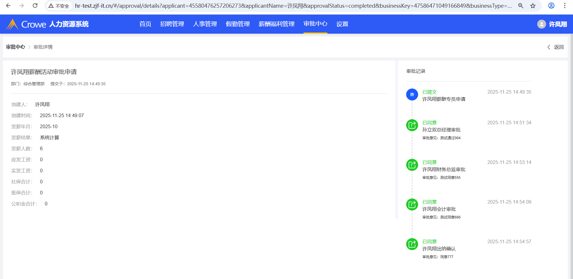 回归未通过,审批中心审批状态:已同意,发薪活动页面审批状态仍是:审批中