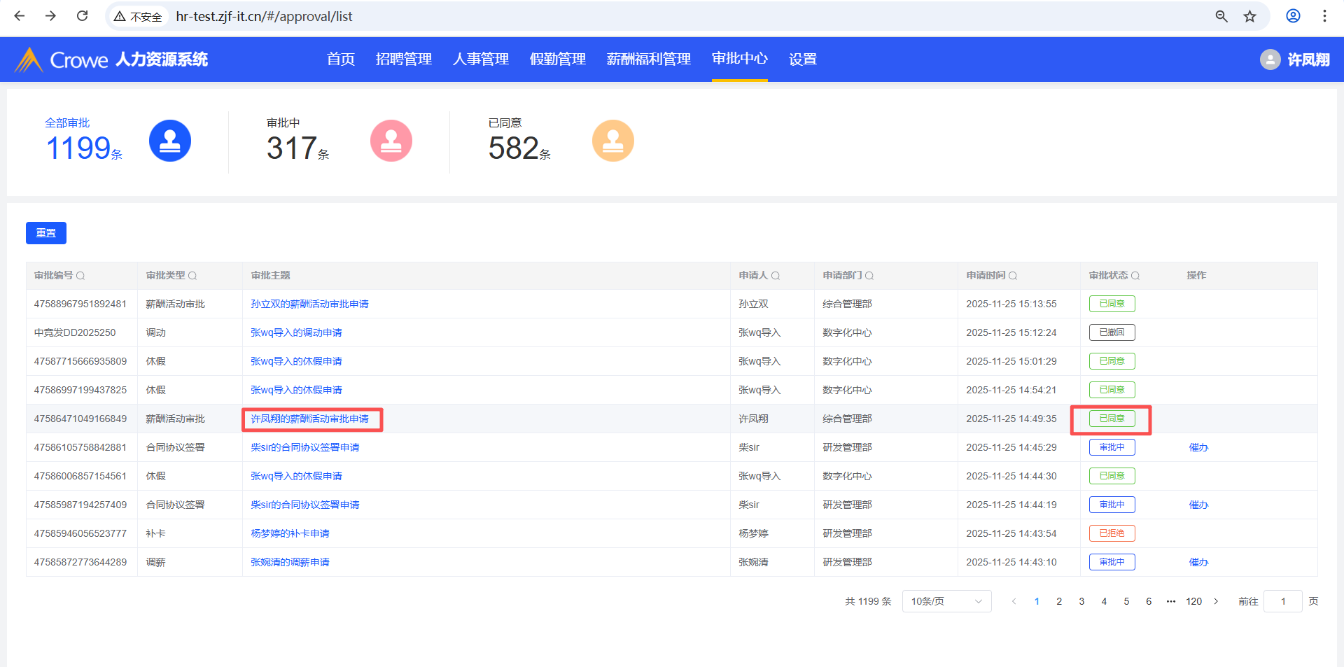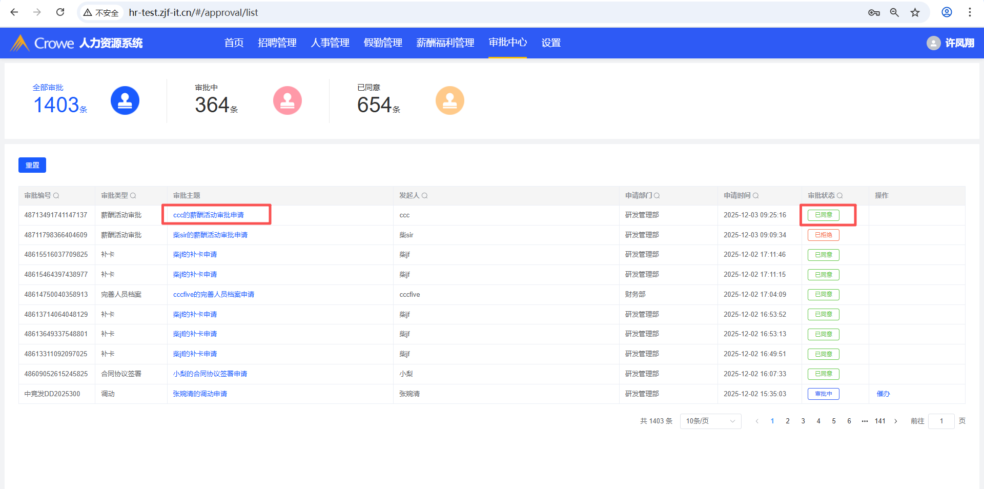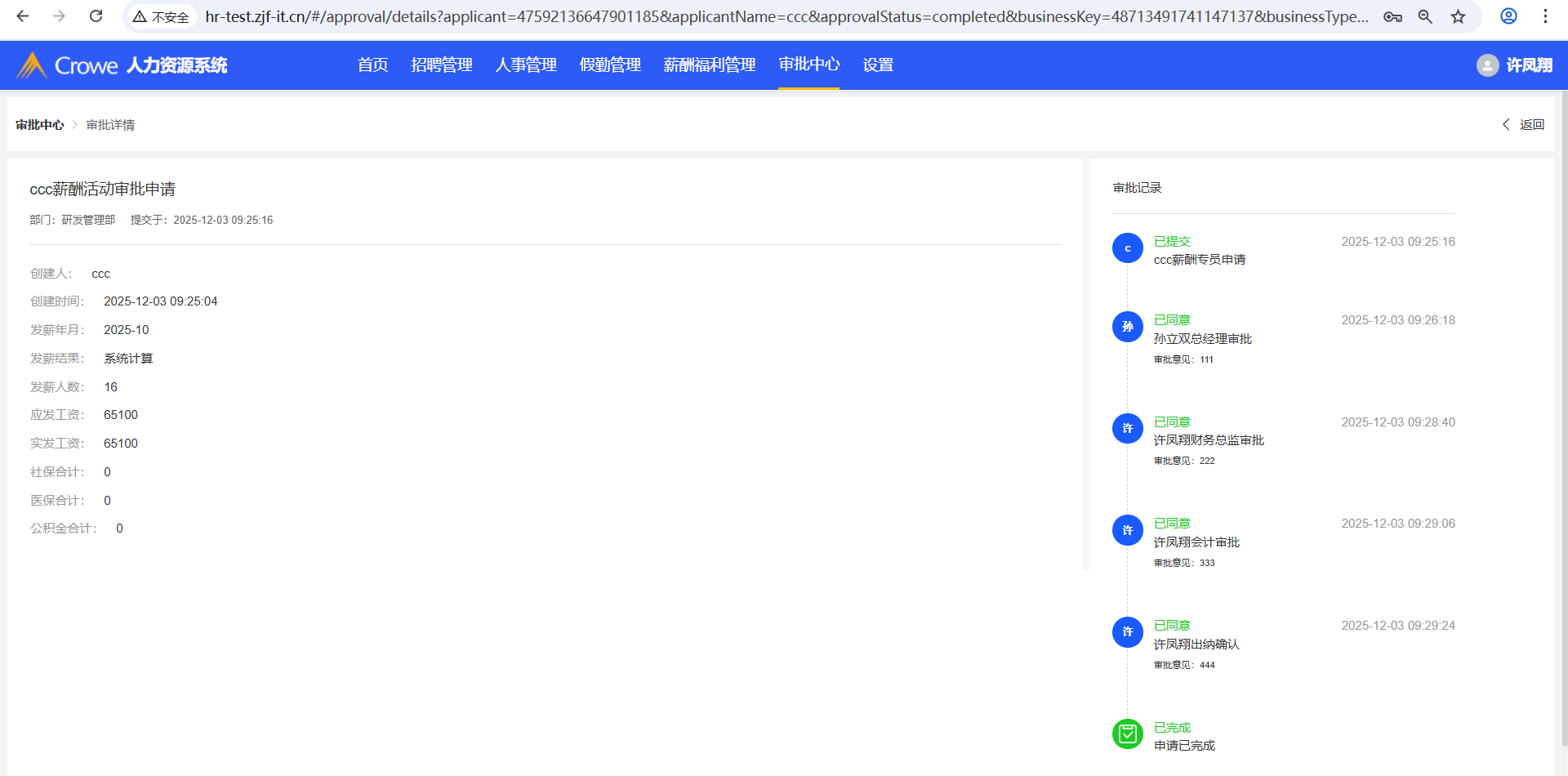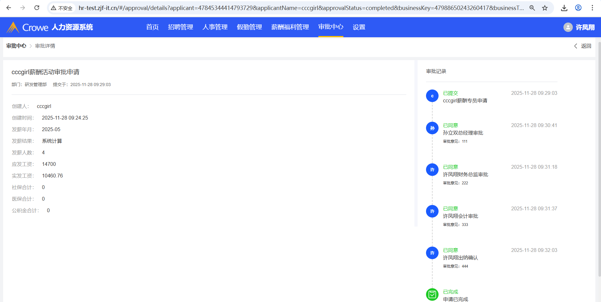 回归未通过,审批中心审批状态:已同意,发薪活动页面审批状态仍是:审批中