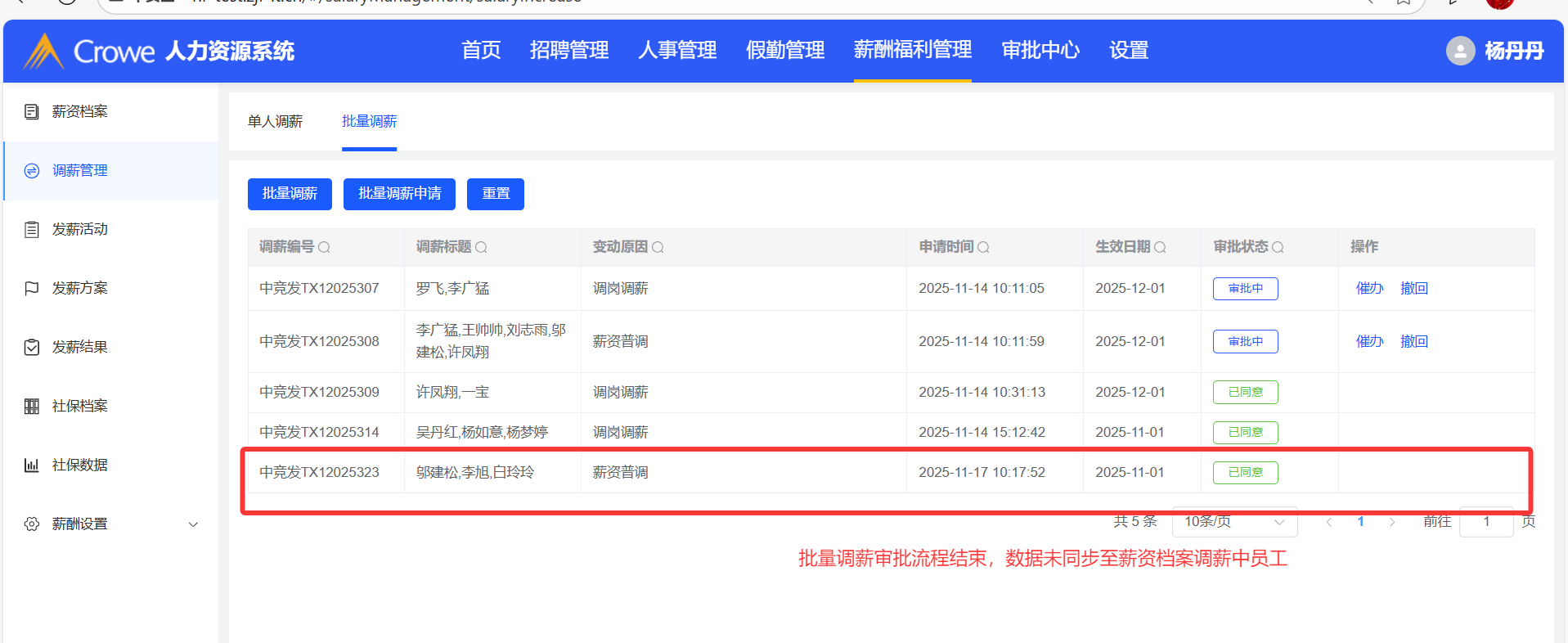 批量调薪审批流程结束后,数据未同步至薪资档案调薪中员工列表