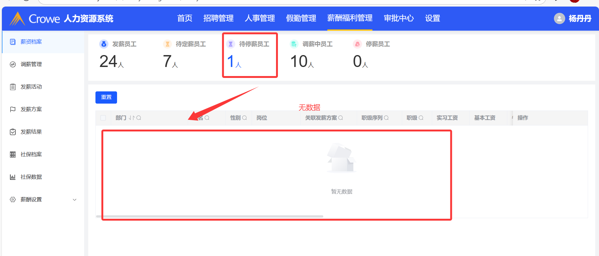 薪资档案--待停薪员工列表数据不相符