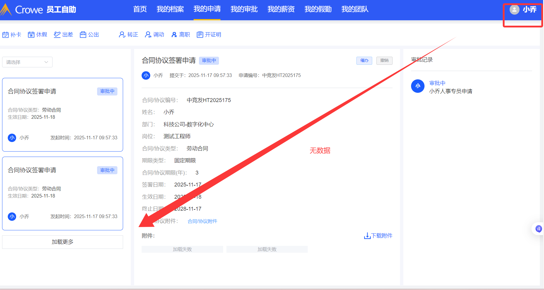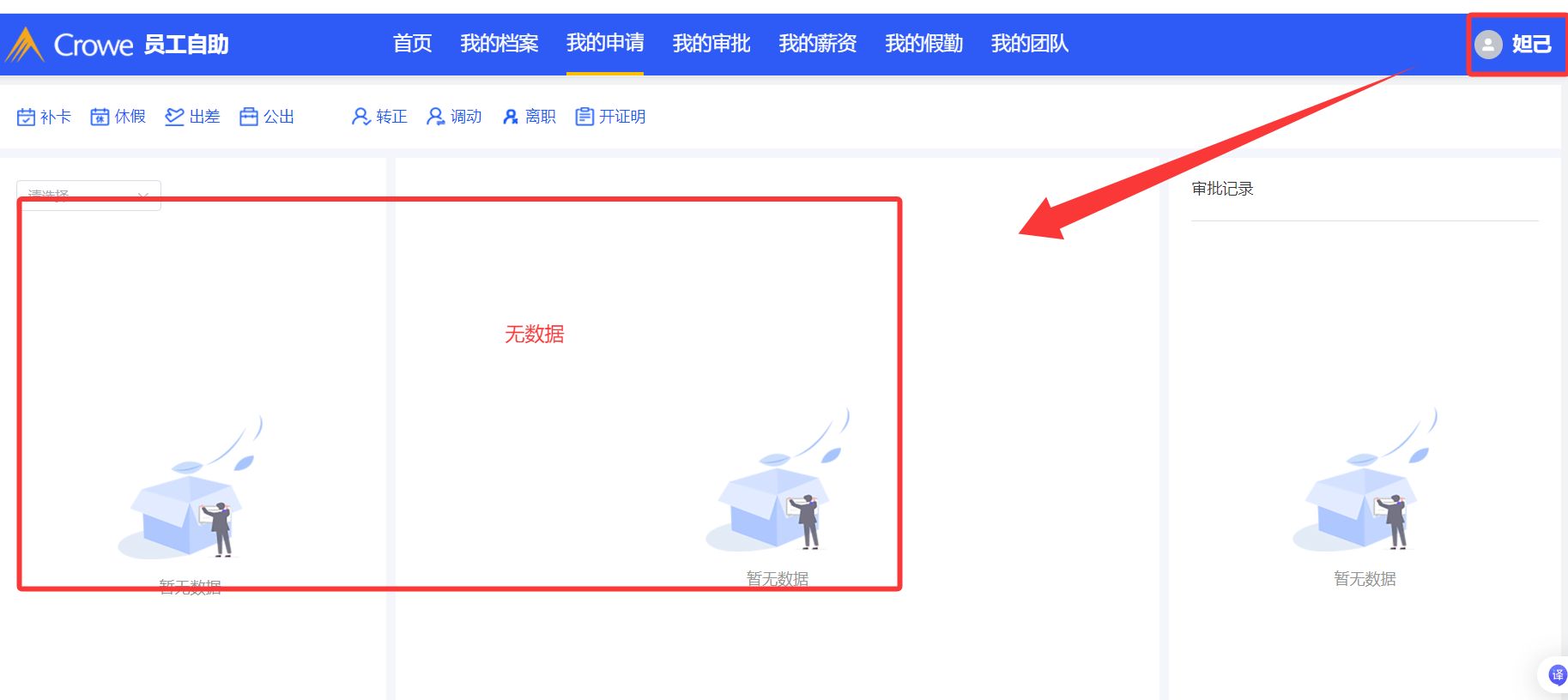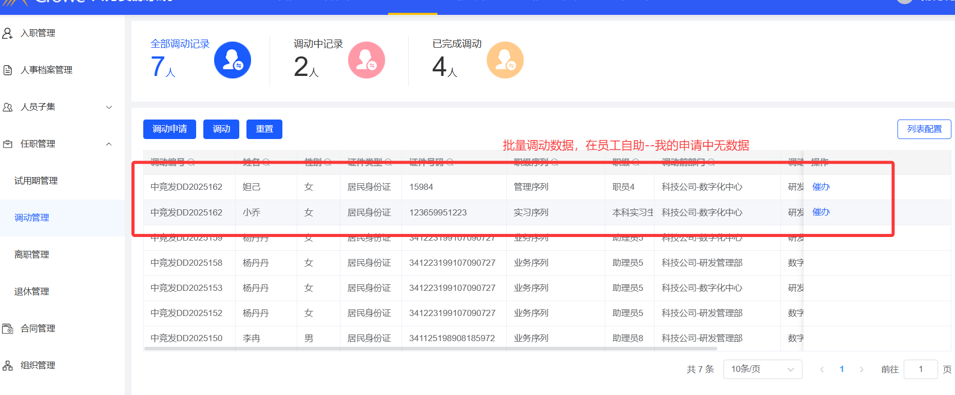 任职管理--调动申请,批量调动后,在员工自助我的申请无数据