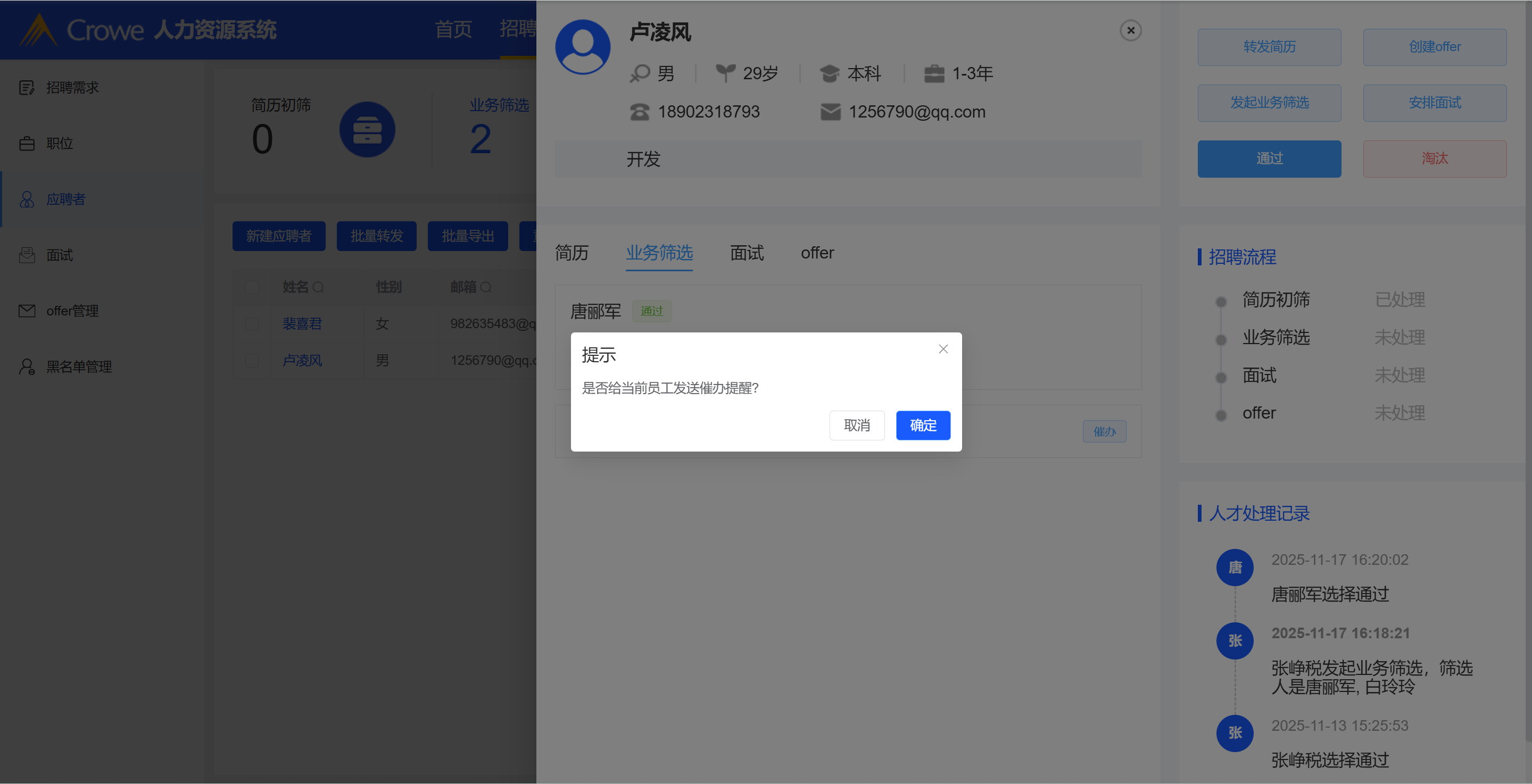 业务筛选对负责人发起催办,负责人没有收到催办消息通知