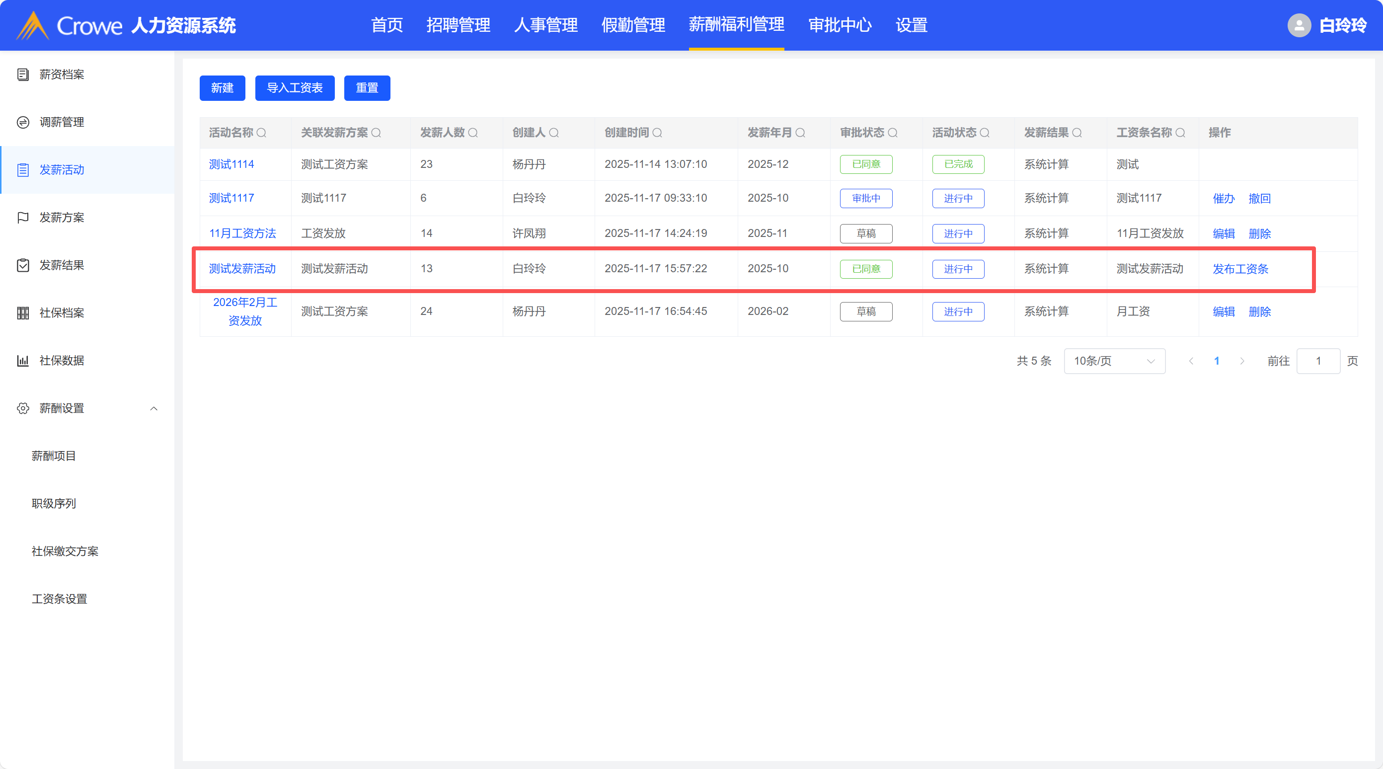 发薪活动,提交审批后,内容没有固定,查看不到之前的设置,审批完成后不能再次设置提交审批