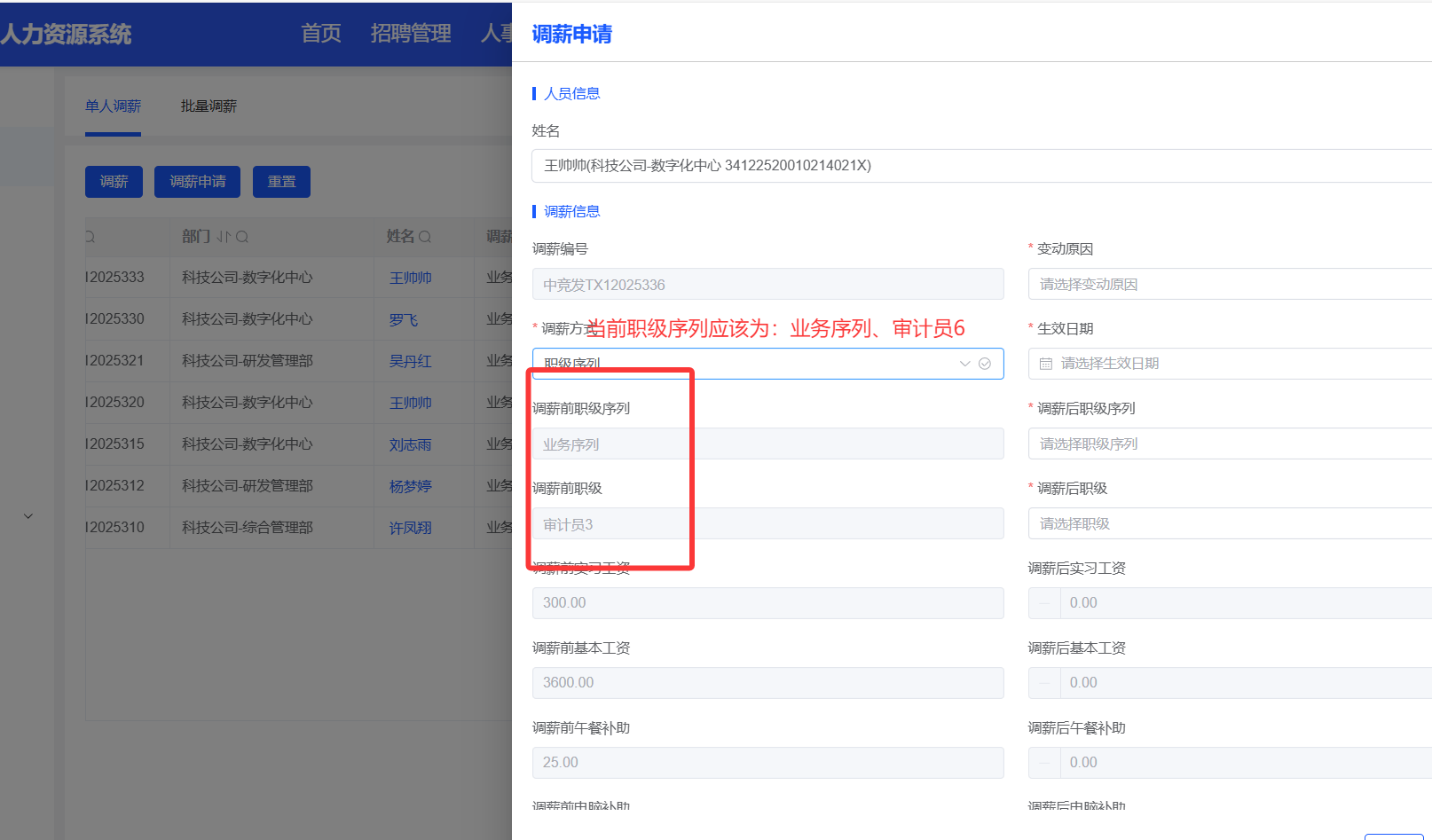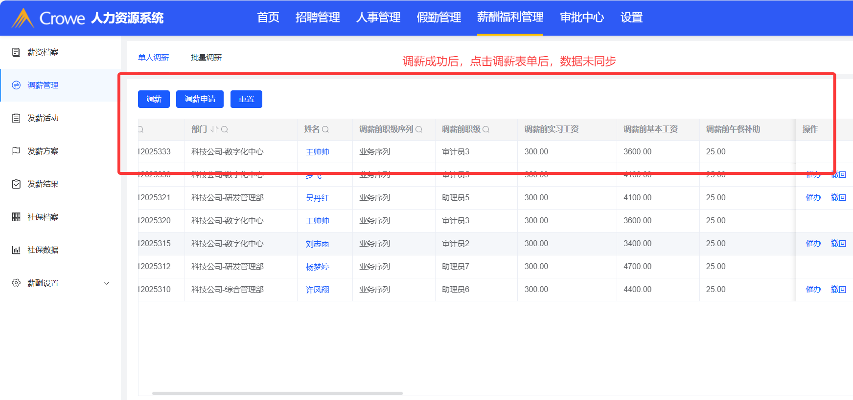 调薪管理,调薪成功后,重新发起调薪或调薪申请时,调薪前数据未同步最新数据